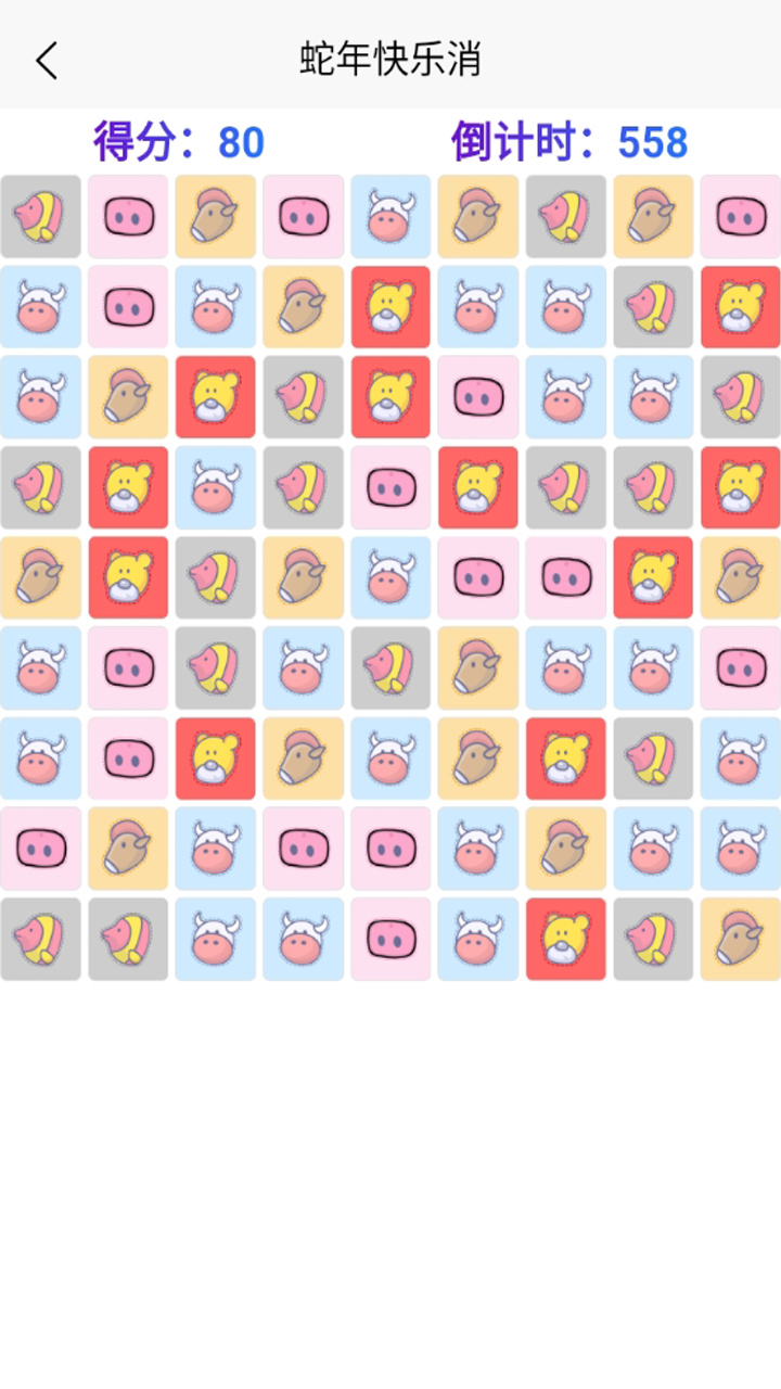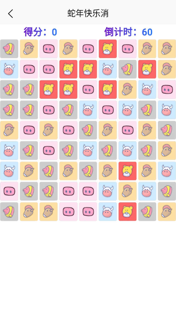 《蛇年快乐消》是蛇年一款趣味十足的经典三消小游戏,迅速找出可以消除的快乐相同图案组合。还是蛇年